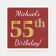 Este simples design de guardanapo de papel apresenta uma mensagem como "55º Aniversário de Michael!", com o "55º" a ter uma aparência falsa de ouro, num fundo de cor vermelha. O nome pode ser personalizado. Pode ser usado em uma festa de aniversário para alguém que comemora seus cinquenta e cinco anos. [~Z0000080]