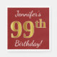 Guardanapo De Papel Vermelho, Faux Dourado 99º Aniversário + Nome Pers