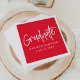 Adicione um toque especial à sua festa de formatura com guardanapos de papel de graduação personalizados! Os guardanapos de papel exibem "Formando" em um script branco manuscrito com um fundo vermelho ou cor de sua escolha. Personalize os guardanapos vermelhos adicionando o nome do formando e o ano de graduação.