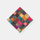 This classic patchowrk pattern showcases an array of colorful fabric squares. Each unique patch features diverse textures, patterns, and intricate embroidered floral or abstract designs, celebrating traditional textile art and bohemian aesthetics with its rich, eclectic, and handcrafted appeal.