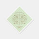 As espirais decorativas e o florescimento enrolaram este elegante vintage inspirou o design de guardanapo de recepção de casamento. Design de ouro antigo e texto com cor verde de fundo da casa de pistácio. Personalize o texto personalizado com um monograma dos nomes da noiva e noiva e a data do casamento.