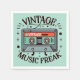 Vintage Music Freak, este design de música apresenta uma fita cassete estilo 80 antiga na escola com texto dizendo, "Vintage Music Freak".