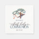 Elegante, garoto religioso Primeiro Sagrado dos guardanapos da Comunhão. Design apresenta cruz aquosa, ícone Bíblia Santa e miçangas Rosárias em cor azul, script de tipografia ''primeira comunhão sagrada'' em caracteres modernos sobre fundo branco. Personalize com um nome e data.