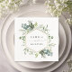 Este guardanapo de cocktail de casamento apresenta cor d'água, eucalipto, folhas verdes, flores com uma falso estrutura geométrica de hexágono dourado. Para personalização mais avançada deste design, clique no link "Personalizar mais". Itens correspondentes também estão disponíveis.