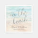 Centered on each napkin, “On The Beach” appears in flowing script, with the couple’s names and wedding date below in a clean serif font for a polished, balanced finish. Text is shown in dark gray by default, but all wording, fonts, and colors can be customized to match your wedding style. Perfect for cocktail tables, bars, or small gatherings at a beach or coastal celebration.