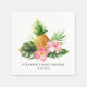 Add a tropical touch to your baby shower with these customizable paper napkins featuring a watercolor pineapple, pink hibiscus, and lush tropical greenery. Personalize with the baby’s name, date, or a short message to create a unique and memorable detail for your celebration. Perfect for tropical or summer-themed baby showers, these napkins tie your table decor together with color, style, and personality.