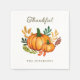 Hand-drawn watercolour rustic pumpkin Thankful paper napkin perfect for your family Thanksgiving dinner. This is a template ready for you to customize. The napkin is printed with a charming rustic fall pumpkin and foliage illustration and reads "Thankful" in vintage green script font at the top. Customization goes at the bottom with your family name. Click the Personalize link to make this napkin yours in only a few minutes.