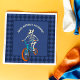Your custom message appears above my hand-drawn comic book style illustration of a werewolf skeleton riding a BMX bike. The ivory, aqua blue and orange colored graphic is set against a navy blue background, including a checkered pattern frame. It's perfect for boys who love riding bikes, especially older boys who want something "cool" and not too babyish.