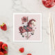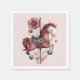 Paper napkins with a cute retro style carousel horse. Drawn in Pretty pink colors with fancy flowers.