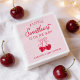 Celebrate a sweet new arrival with this sweetheart-themed baby shower napkin featuring a soft pink background and Valentine-inspired design. The phrase “A Little Sweetheart Is on the Way!” is displayed in a handwritten red script, with two red heart-shaped cherries tied with a bow shown below. The napkin can be personalized with the mother-to-be’s name displayed beneath the design. Festive and charming, this pink baby shower napkin is a lovely accent for Valentine or sweetheart-themed celebrations welcoming a baby girl.