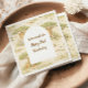 A soft and charming safari-themed design featuring gentle watercolor animals surrounded by delicate wildflowers and botanical greenery. Sweet lions, giraffes, elephants, and zebras create a whimsical storybook scene in warm neutral tones of beige, cream, and soft sage. The elegant arch layout and botanical details give this design a timeless and refined look, perfect for celebrating a little one’s special first birthday.