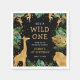 Celebre seu primeiro aniversário selvagem com esses guardanapos do safari da selva, com folhas falsas de ouro (girafa, leão e macacos), folhagem de ouro e selva verde, e aspersão de um confete de ouro. Adicione o nome do seu filho e outro texto personalizado em ouro e branco sobre um fundo preto.