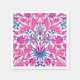 Napantes de papel em uma safra William Morris padrão de hiacintas, tulipas e folhas, em tons de fúsia e rosa macio, acentuados com azul escuro e turquesa, sobre fundo branco