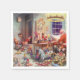 Rapazes de papel vintage, encantadores, com Papais noeis com seus elfos na oficina.
