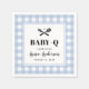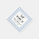 Um padrão de xadrez de gingham azul e macio enquadra texto personalizado neste guardanapo de coquetel de papel personalizado. Edite facilmente todo o texto e você pode até alterar a cor do plano de fundo.