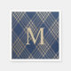 Guardanapo De Papel Xadrez Elegante de Monograma Azul e Tan