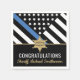 Este design apresenta uma bandeira da polícia com listras pretas e brancas, e uma fina faixa azul de linha também. Uma forma excelente de dizer parabéns aos novos reformados ou formandos para sua aposentadoria ou graduação na academia de polícia. Personalize com o nome do oficial de polícias, xerife, capitão ou chefe. Celebre este marco em estilo!