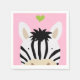 Zebra com guardanapos de papel com placas de papel correspondentes.