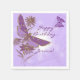 Um design de imagens Digitalbcon com um tema de cores bicolor, roxo e branco, com uma variedade de imagens personalizadas, formas, padrões, estilos e letras de texto neste guardanapo de papel de aniversário da borboleta único. Este design atraente e elegante vem completo com letras de texto personalizadas para se adequar à sua ocasião especial, adicionando os toques finais à sua celebração de aniversário perfeita.