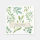Guardanapos de casamento quadrados elegantes com greenery pintada à mão em aquarela e acentos em dourado falso. Personalizados com os nomes do casal e a data do casamento, esses guardanapos rústicos trazem um toque botânico sofisticado para o seu reception, jantar de ensaio ou coquetel.