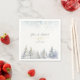 Estes guardanapos de casamento de inverno florestal apresentam uma floresta de pinheiros serena em aquarela com flocos de neve caindo suavemente, perfeitos para recepções aconchegantes e elegantes. Personalizados com nomes e data, eles complementam temas rústicos, boho e de montanha nevada lindamente.