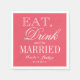 Guardanapos de papel de fundo personalizados para casamento. Coma bebida e se case com guardanapos de casamento rosa e papel branco. Design de tipografia de script elegante para festa de casamento de classe. Caligrafia manuscrita na moda combinada com fontes formais quic. Modelo de tendências com cores de fundo personalizáveis. Um slogan bonito para a mesa de janto chic rustic country. Excelente também para jantadas de ensaio, hora do coquetel, churrasco, recepção etc. Personalizado com o nome da noiva e do noivo e a data do casamento. Belo decoro formal de casamento.
