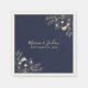 Estes guardanapos de casamento elegantes apresentam um fundo azul-marinho sofisticado com delicados acentos florais dourados nos cantos e nomes em letra cursiva estilosa. Um toque atemporal para o jantar de recepção, hora do coquetel ou mesa de sobremesas — perfeito para celebrações de outono, inverno ou formais.