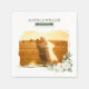 Eleve a decoração do seu casamento com esses elegantes guardanapos de foto personalizados. Com um belo design floral branco e folhagens, personalize facilmente com sua foto de noivado favorita, nomes e data de casamento. Perfeito para o coquetel ou jantar de recepção. Parte da coleção 'Sophia & William' para um visual coordenado