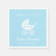 Guardanapos de chá de fraldas personalizados com carruagem. Design neutro com carrinho de bebê e data de nascimento. Adorável bebê buggy/pram com ilustração cardíaca. Faça seus próprios guardanapos para bebês com texto personalizável. Em azul pastel e outras cores como cinzas cor-de-rosa claro púrpura, etc. Ótima ideia para a nova mãe, para ser mãe. Também é útil para a festa de primeiro aniversario infantil.