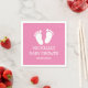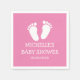 Guardanapos de Chá de fraldas com pegadas bonitas. Design neutro em gêneros para recém-nascidos ou meninas. Basta mudar a cor de fundo para rosa, azul ou amarelo. Design vetor de pequenos passos para bebês com modelo de tipografia infantil para nome de criança mais data de nascimento. Pés pequenos com imagem de dedos. Fornecimentos de festas para a mãe nova/mãe grávida. Faça seus próprios doces acessórios descartáveis para adoráveis filha, filho, neto, neta, primo, neto etc.