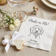 Guardanapos de casamento de cachorro goldendoodle preto são a maneira perfeita de incluir seus bebês de estimação favoritos na cerimônia de casamento. Ofereço muitas raças para que você possa fazer guardanapos para cada um de seus animais de estimação. Personalize com o nome do seu cachorro, nome da noiva e do noivo e data do casamento ou texto personalizado. Este design também inclui um adorável gráfico de desenho de doodle de cachorro goldendoodle. Perfeito para qualquer tema de casamento, de moderno a rústico.