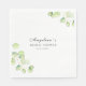 Guardanapos de festa para um chá de noiva em um estilo suave, elegante e minimalista, decorados com galhos com folhas verdes.