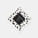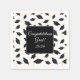 Este guardanapo de papel é mostrado em um tamanho de coquetel branco com uma estampa de gorro de formatura.