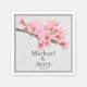 Celebrar um casamento de primavera com uma mão pintada, design cor-de-rosa, com flores de cereja. Personalizar com nomes e data. Alterar as cores de fundo para corresponder ao seu tema manter a cinza e o tema rosa.