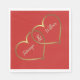 Guardanapos de papel elegantes inspirados em casamentos asiáticos feitos em vermelho com gráficos de dois corações de ouro entrelaçados. Personalize com os nomes da noiva e do noivo.