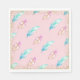 Guardanapos para chá de bebê boho com belas penas em tons de rosa e azul turquesa em um fundo rosa e dourado. Esses guardanapos boho são facilmente personalizados para o seu evento adicionando texto. Você também pode remover as penas e/ou o fundo rosa e adicionar a cor de sua escolha.