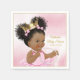 Guardanapos para chá de bebê da princesa com linda menina negra com rabos de cavalo fofos usando uma linda corrente de pérolas e coroa rosa e dourada sentada em uma almofada dourada em um belo fundo rosa e dourado. Esses guardanapos para chá de bebê da princesa rosa e dourado são facilmente personalizados para o seu evento, basta adicionar o texto de sua escolha. Você também pode remover o fundo e adicionar a cor de sua escolha.