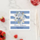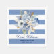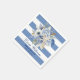 Guardanapo de faixa náutica azul empoeirado para chá de panela de noiva costeira com estrela-do-mar e conchas.