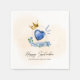 É um guardanapo de papel moderno e brilhante com pedras e flores de aniversário