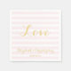 Crie seus próprios guardanapos de papel personalizados, elegantes, modernos, com padrão de listras cor-de-rosa, tipografia / letra / fonte bonita, para coquetel de festa de casamento / aniversário. Basta digitar os nomes dos noivos ou esposos e a data do casamento para personalizar. Guardanapos de papel elegantes e sofisticados, perfeitos para recepção de casamento, celebrações de aniversário, festa de noivado e mais.