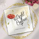 Adquira para si alguns guardanapos elegantes e bonitos decorados para o seu jantar de ensaio. Os guardanapos vêm em um estilo moderno de caligrafia com fonte ~A NOITE ANTES~. Além disso, você pode personalizar o nome da noiva e do noivo. Os guardanapos apresentam brilho com Flor Papoula Vermelha e confetes para torná-los tão bonitos e elegantes.