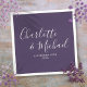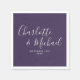 Com nomes de estilo de assinatura, estes guardanapos roxos elegantes podem ser personalizados com sua informação em letras brancas chiques. Projetado por Thisisnotme©