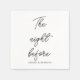 Adquira para si alguns guardanapos decorados elegantes e bonitos para o seu Jantar de Rehearsal. Os guardanapos vêm em um estilo moderno de caligrafia com fonte ~A NOITE ANTES~. Além disso, você pode personalizar o nome da noiva e do noivo. Os guardanapos apresentam brilho com Eucalipto e confetes para torná-los tão bonitos e elegantes.
