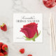 Guardanapos elegantes para Chá de Noiva com rosa vermelha em aquarela. É muito fácil personalizar, com detalhes das suas informações pessoais.