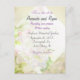 As cores pastéis suaves das flores são o pano de fundo de um diamante branco super imposto no fundo com uma sombra verde mais leve ao redor dos cantos. Convite de casamento clássico primavera com cinzas elegantes e fontes de lavanda.