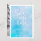 Salve nossos convites de casamento de data em azul d'água, adicione uma foto do casal feliz no verso e seu endereço de site opcional.