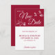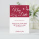 O cartão de adiamento do casamento "New Date", elegante e romântico, com um belo e delicado design de linha de orquídeas brancas no topo, sobre um clássico fundo vermelho de Crimson. A parte inferior é facilmente personalizável editando os campos de modelo com seus nomes, data e local em uma fonte moderna e simples de bonés vermelhos escuros, sobre um simples fundo branco. Para mais personalizações ou encomendas personalizadas, contacte-me livremente em acherryonthecake@hotmail.com (permita 1-2 dias úteis). Esse cartão Salvar a Data faz parte da coleção "Orquídeas Delicadas - Suínos Vermelhos Crimson" com muitos itens coordenadores para criar um pacote de casamento exclusivo.