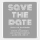 Retro Save the Date Stickers in cinza and white with a funky moderna typografia design. Essas tendências e na moda salvam os adesivos de data são fáceis de personalizar com seus detalhes de casamento. Para obter mais opções de personalização, clique no botão Personalizar Ti.