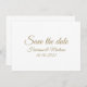 Salvar Data, texto personalizado de script elegante Cartão de Anúncio de Casamento. texto de script daux gold, fundo branco