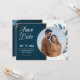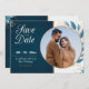 Um anúncio bonito, guardado na data, com uma janela redonda de fotos, aparado com folhas azuis.<a href="https://www.freepik.com/free-photos-vectors/people">Foto do Pessoas criada pelo remetente - www.freepik.com</a>).<a href="https://www.freepik.com/free-photos-vectors/wedding">Vetor de casamento criado por pikisuperstar - www.freepik.com</a>). <br/>() O cartão é fácil de personalizar com seu texto, fonte, cor da fonte e escolha de tipos de papel.<br/>() Não exatamente o que você está procurando? Todos os nossos produtos podem ser personalizados para atender às suas necessidades sem custos adicionais.<br/>() Basta entrar em contato conosco em heartfelthelper@gmail.com<br/>() Coordenando os produtos disponíveis: